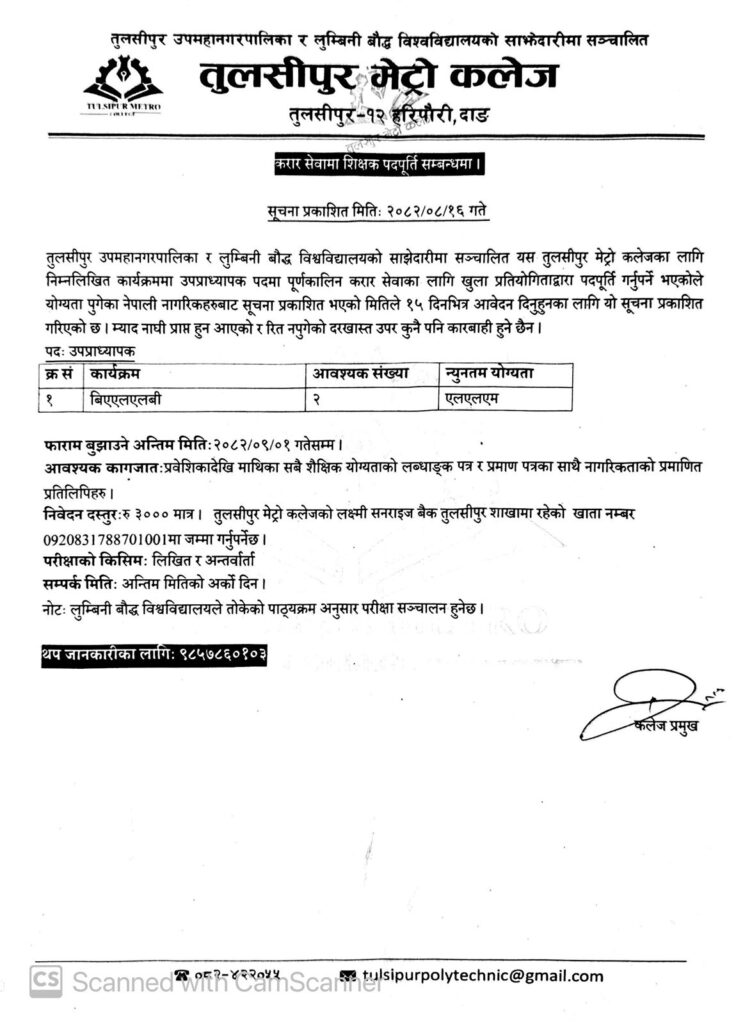 करार सेवाम शिक्षक पदपूर्ति सम्बन्धमा।